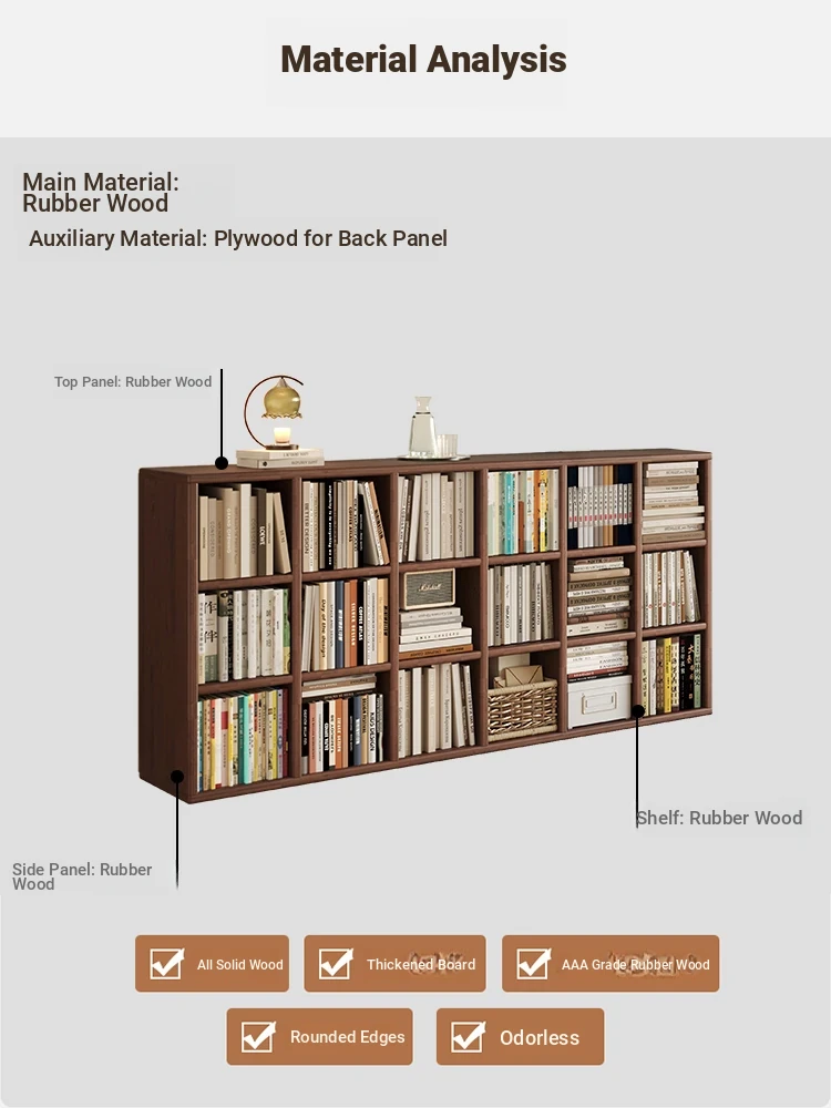 Rubber Wood Multi-Functional Low Cabinet: Stylish Living Room Bookcase and TV Stand Combo with Storage Drawer - Solid Wood Shelf for Organized Living Spaces