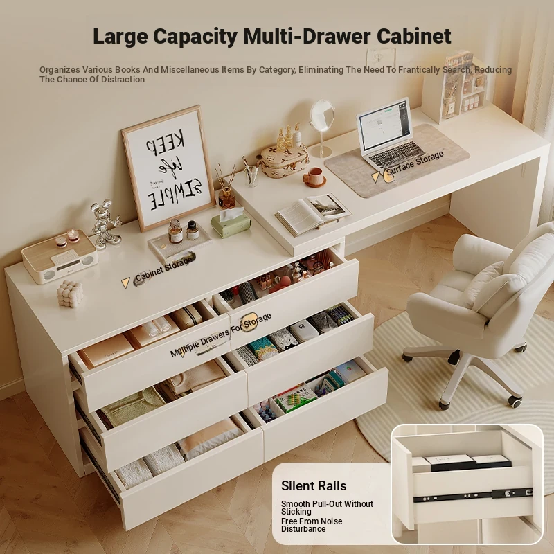 Creamy Corner Desk and Dresser Combo - 2025 New Stylish Vanity Table, Half-Enclosed Makeup Desk for Bedroom, Perfect for Work and Beauty Routine.