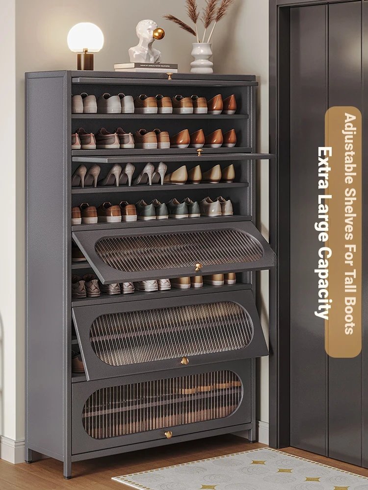 Stylish Iron Alloy Shoe Rack - Large Capacity Multi-layer Storage Cabinet for Home Entrance, Wall-mounted Design for Easy Organization and Space Saving.
