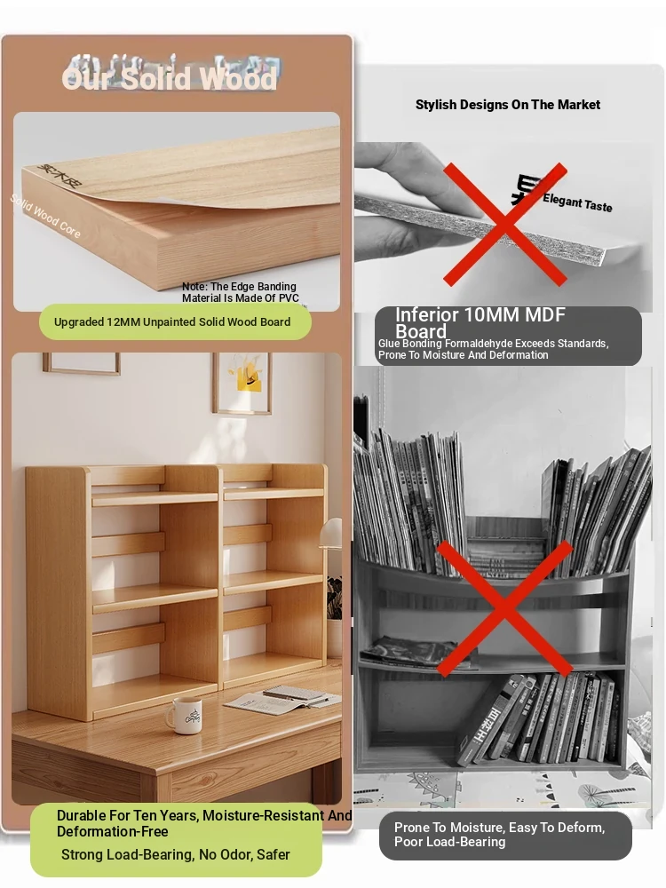 Solid Wood Desktop Bookshelf - Stylish Multi-Tier Storage Rack for Home Office, Ideal for Children’s Study Desks, Compact and Functional Small Book Cabinet