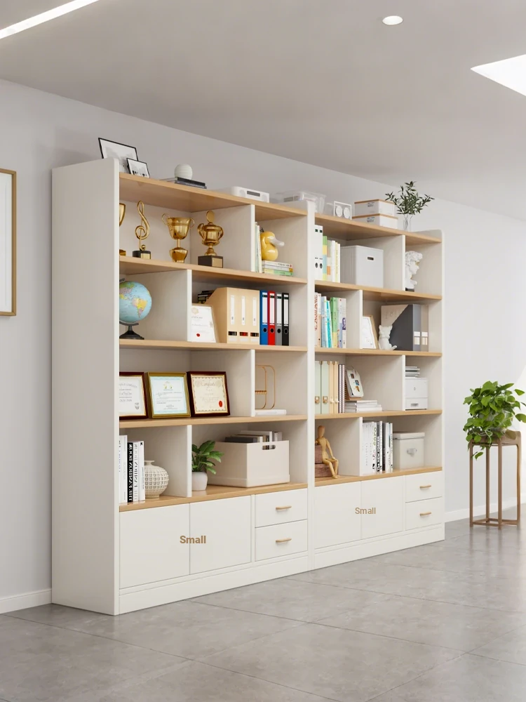 Solid Wood Bookshelf Office Full Wall Storage Cabinet for Boss Background - Stylish Display and File Organizer Unit