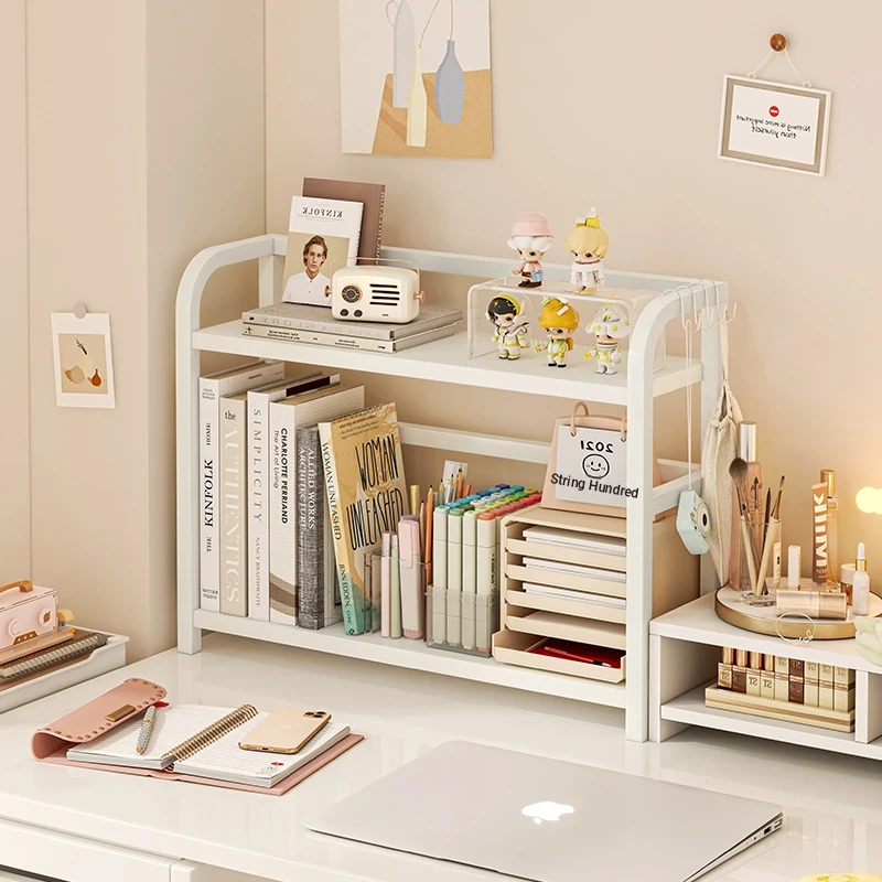 Desktop Bookshelf Storage Rack - Stylish Iron Organizer for Office, Students, and Dorms - Perfect for Books, Cosmetics, and More!