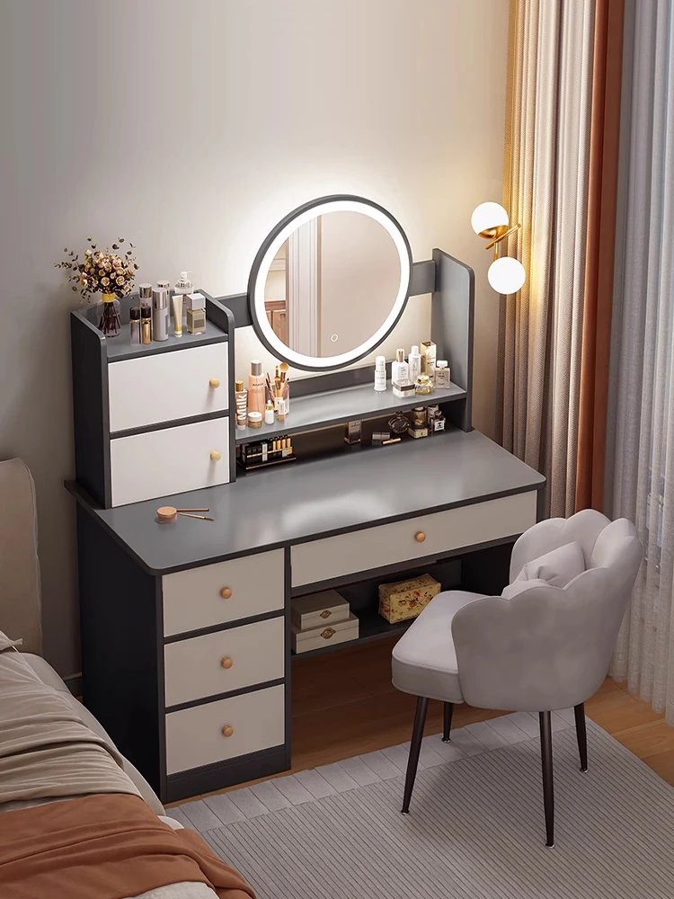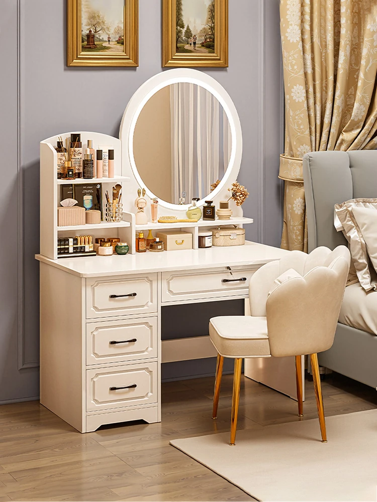 Elegant Minimalist European Style Vanity Table for Bedroom - 2025 New High-End Makeup Desk and Cabinet for Small Spaces