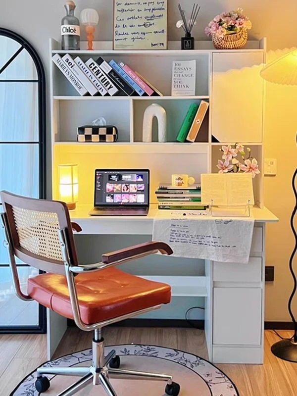 Stylish Solid Wood Computer Desk for Girls - Multi-functional Makeup Table & Bookshelf Combo, Perfect for Bedroom, Study, and Bedside Use. Ideal for Study and Organization!