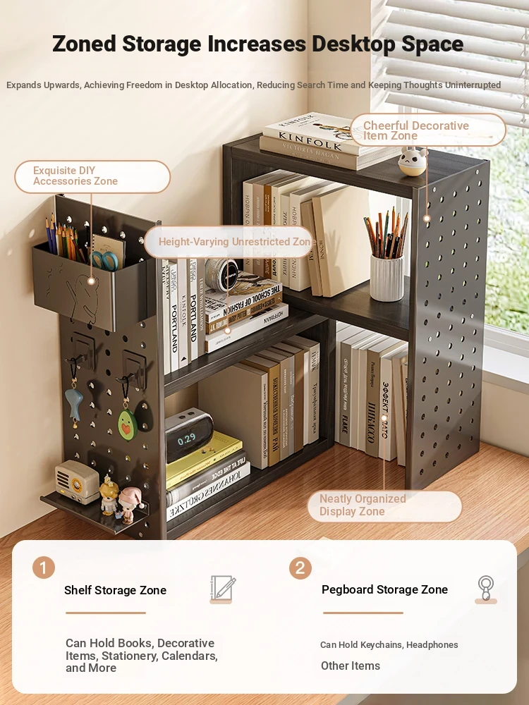 Expandable Corner Desktop Organizer with Pegboard – Versatile Bookshelf for Writing Desk, Office, and Computer Table Storage Solutions