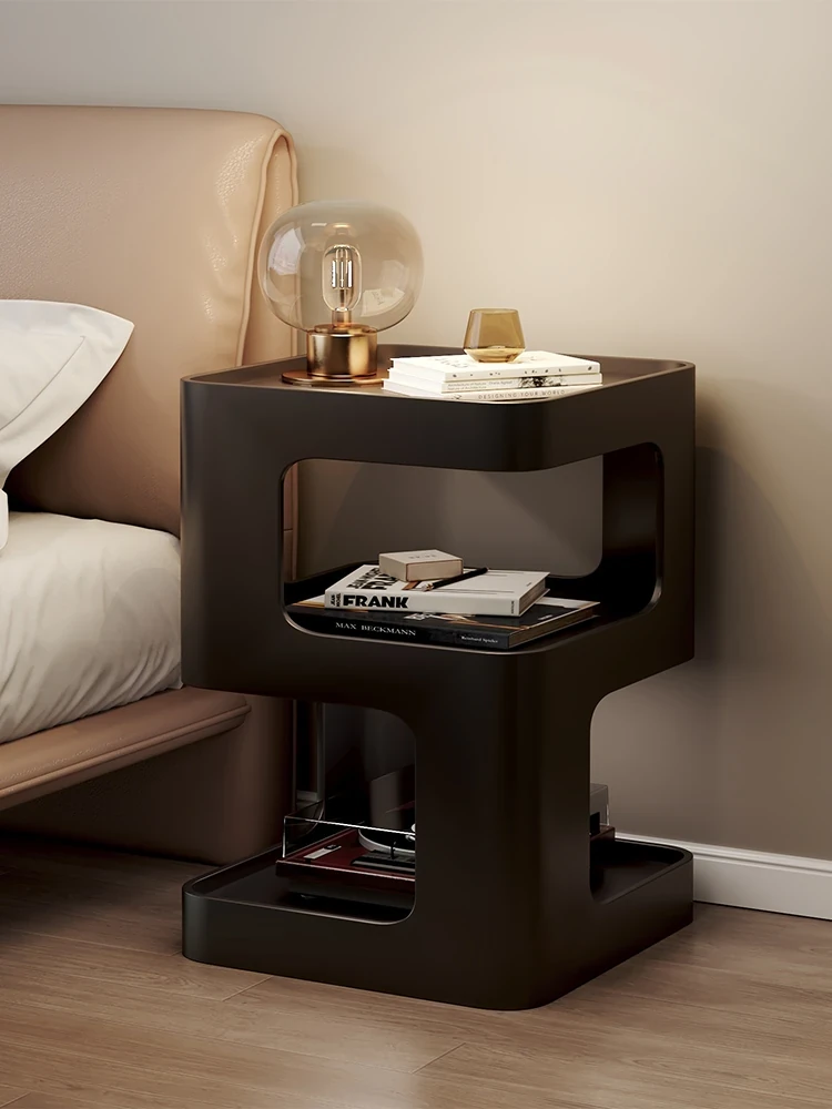 Modern Minimalist Black Iron Nightstand - Stylish Bedroom Bedside Table with Storage Shelf, Perfect for Home Use and Small Spaces
