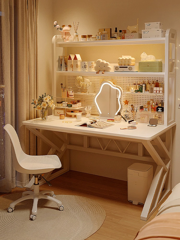 Modern Minimalist Computer Desk and Vanity Combo for Bedroom - Stylish Makeup Table and Study Desk for Students, Featuring Convenient Storage Shelves