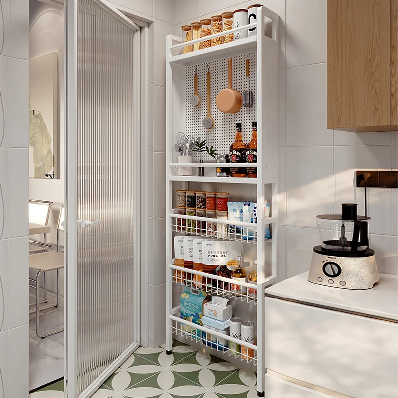 Ultra-Thin Wall-Mounted Storage Rack with Pegboard - Multi-Layer Narrow Cabinet for Kitchen, Perfect for Small Spaces and Maximizing Storage Efficiency!