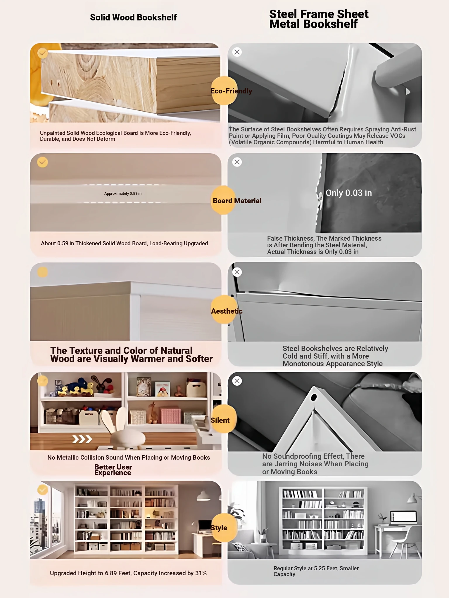 Solid Wood Bookshelf - Multi-Layer Floor-Standing Children’s Book Rack for Home Reading Area, Wall-Integrated Design for Living Room, Stylish Storage Solution for Organizing Books and Toys