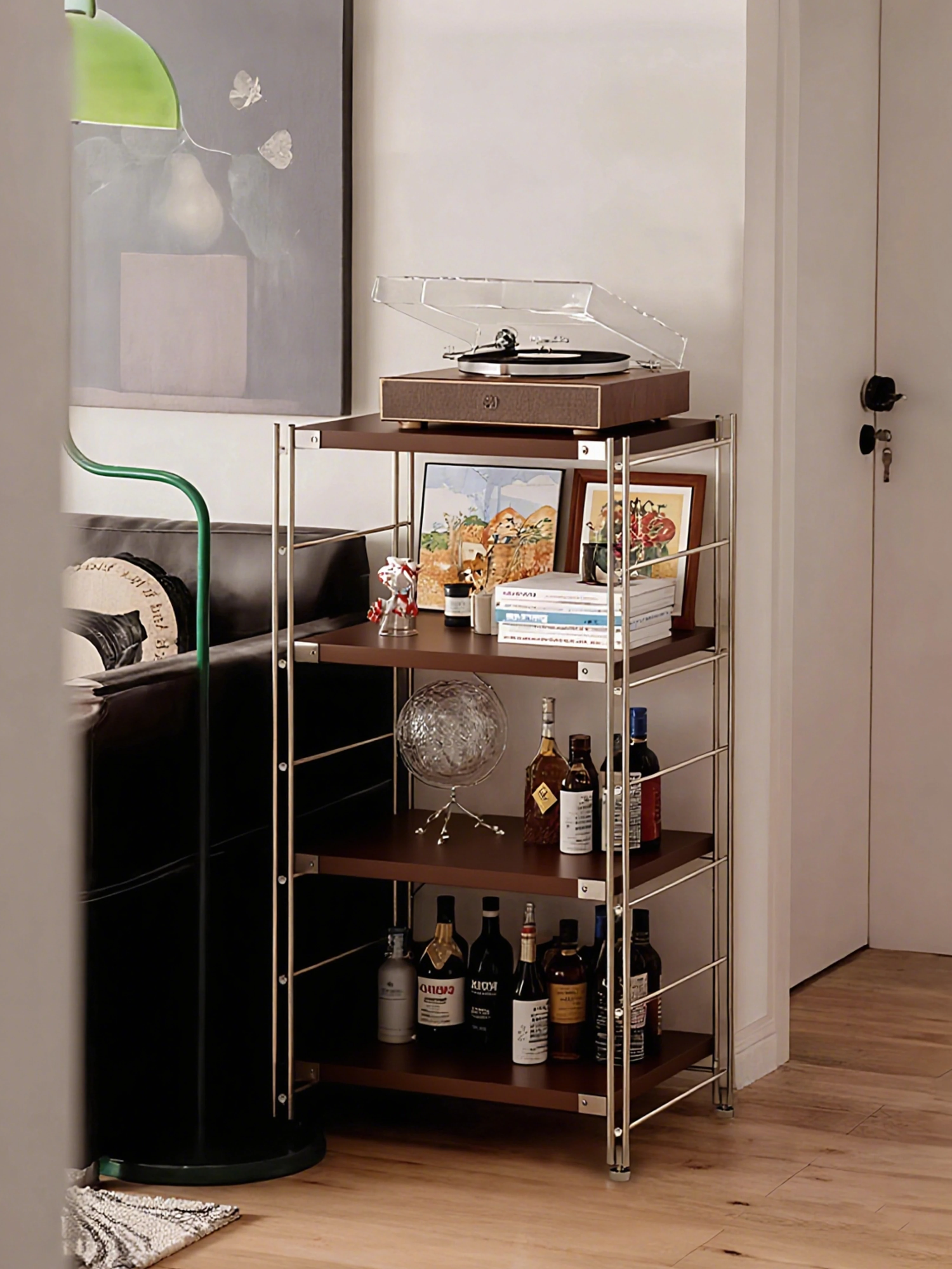 Japanese Style Multi-Layer Side Storage Rack - Slim Sofa Side Table for Living Room, Perfect for Displaying and Organizing Your Essentials!