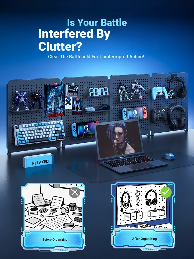 Black Gaming Pegboard Shelf - Freestanding No-Drill Display for Your Computer Desk, Perfect Room Decoration & Metal Storage Solution