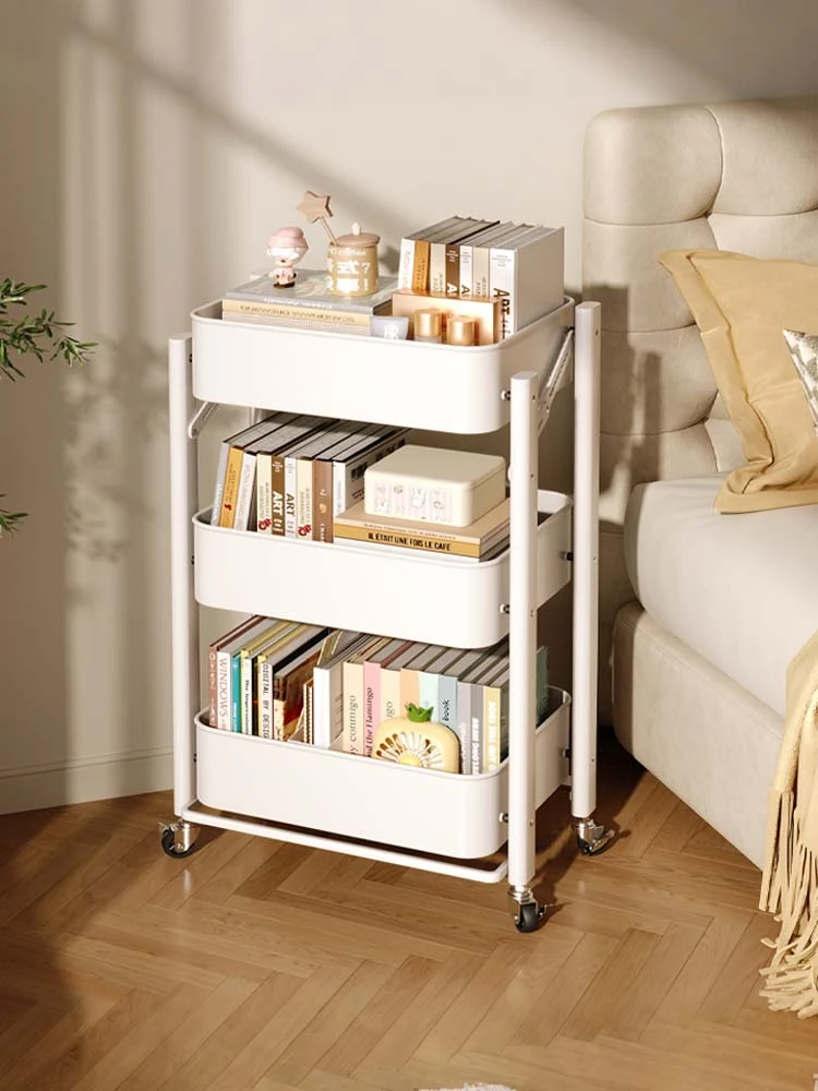 Portable Rolling Cart with Wheels - No Installation Needed, Ideal for Snacks in the Bedroom or Kitchen Storage, Collapsible Bookshelf for Versatile Organization