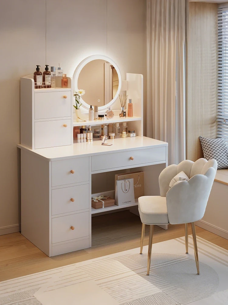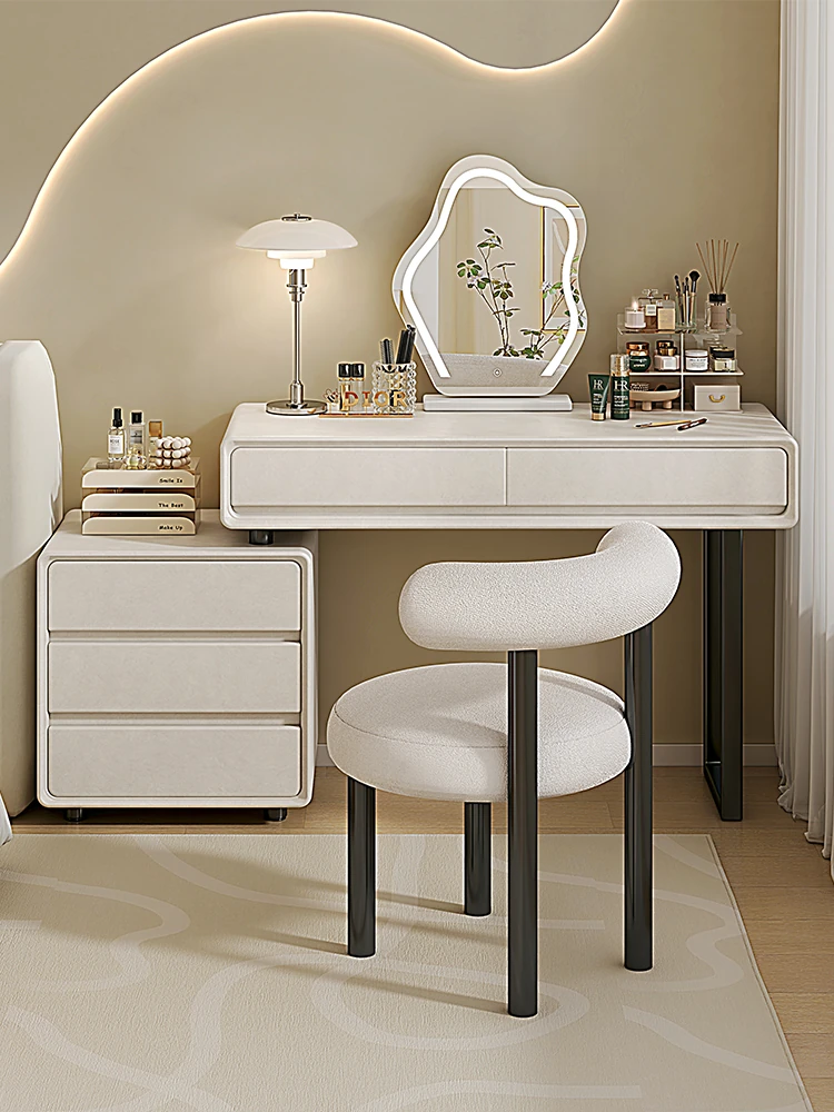 Modern Vanity Table for Bedroom - 2025 New Lightweight Luxury Makeup Desk with Integrated Storage Cabinet and Writing Desk for Elegant Master Bedroom Organization.