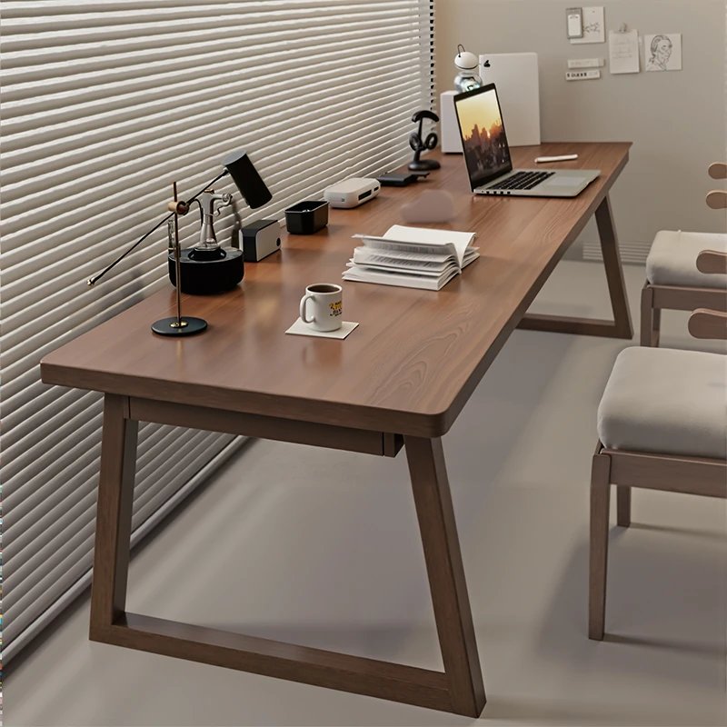 Elegant Solid Wood Double Desk - Spacious Long Table for Living Room, Office, or Study - Perfect Workstation for Students and Home Use - Stylish Writing and Computer Desk