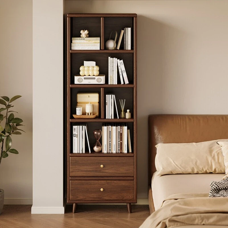Solid Wood Floor Bookshelf - Dustproof Storage Cabinet with Acrylic Doors, Narrow Organizer for Home Use, Perfect for Kids' Rooms