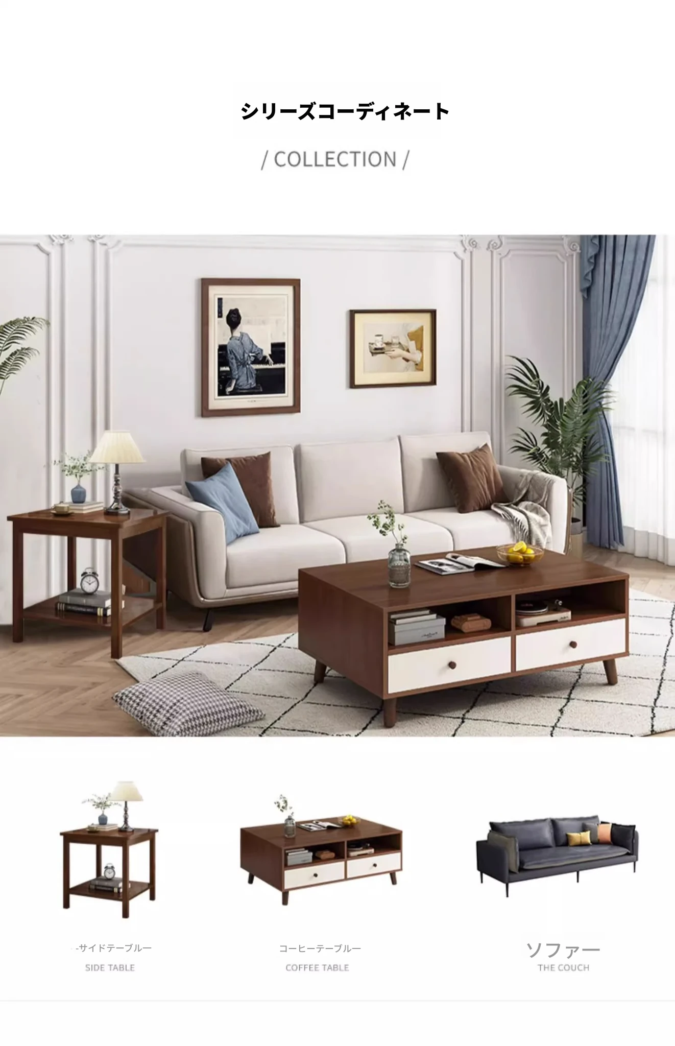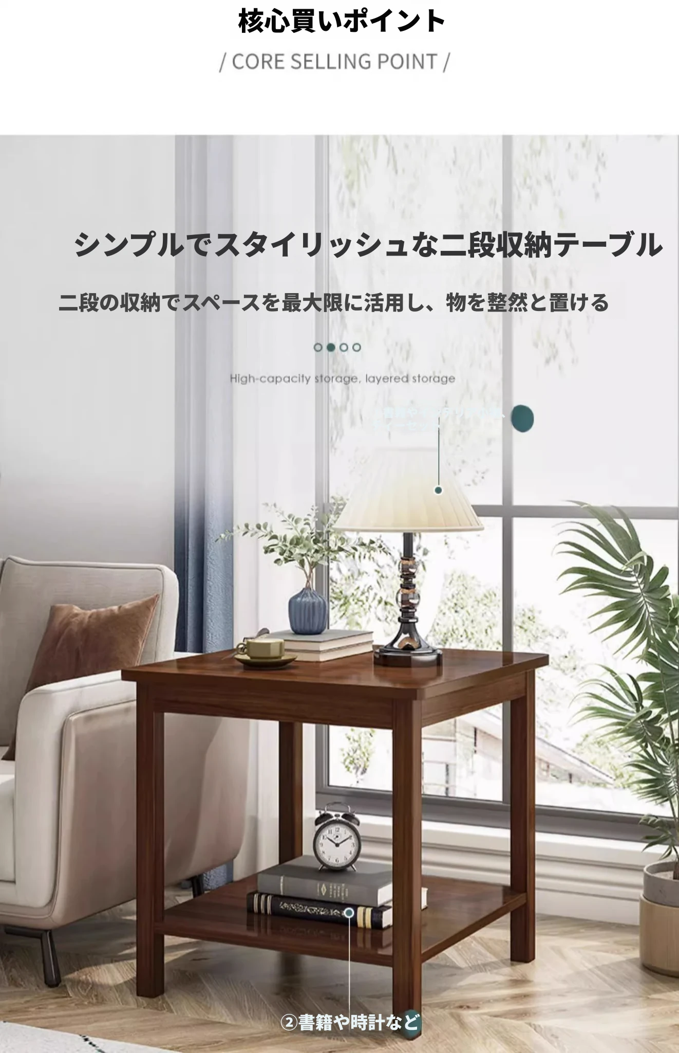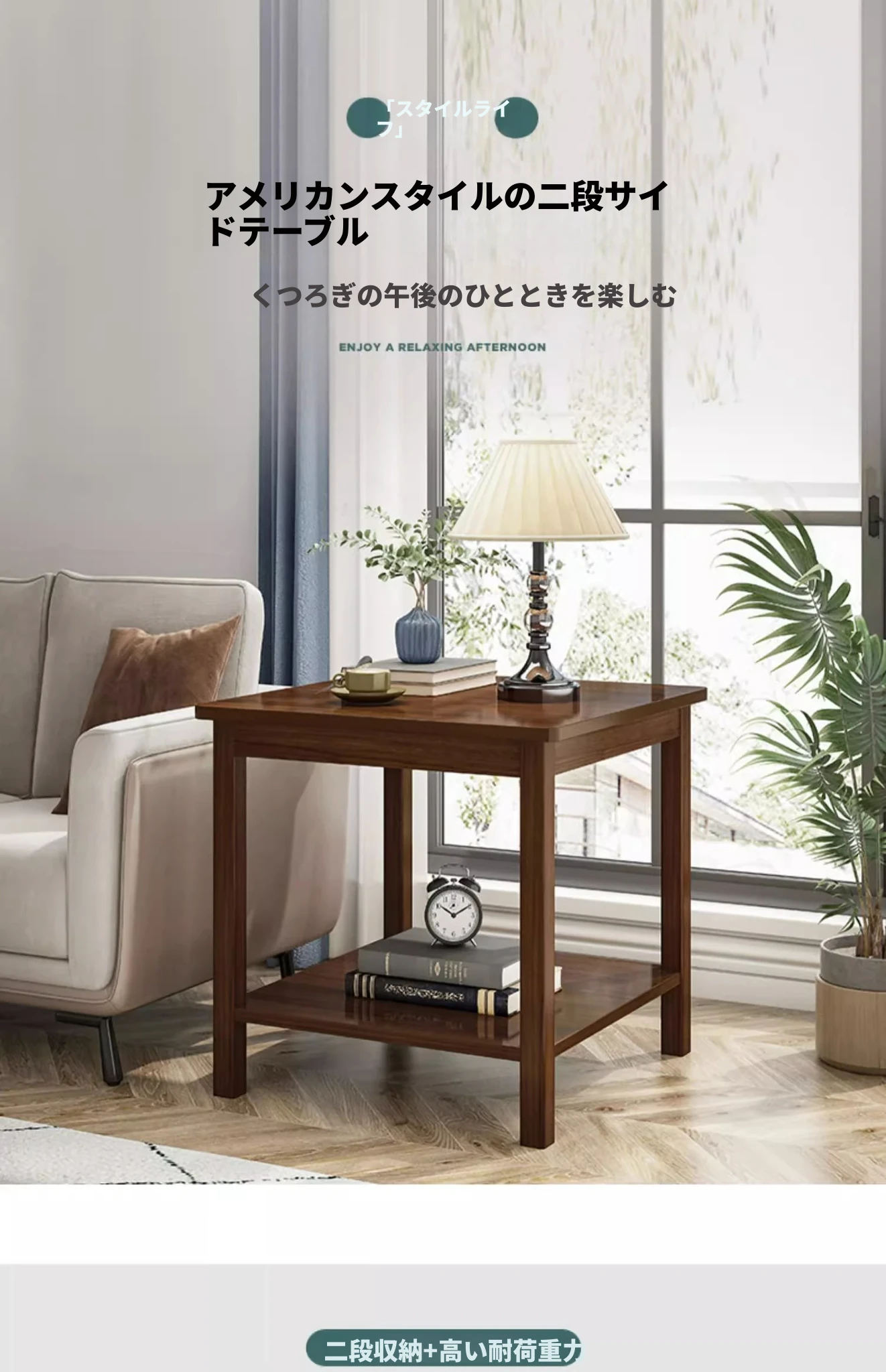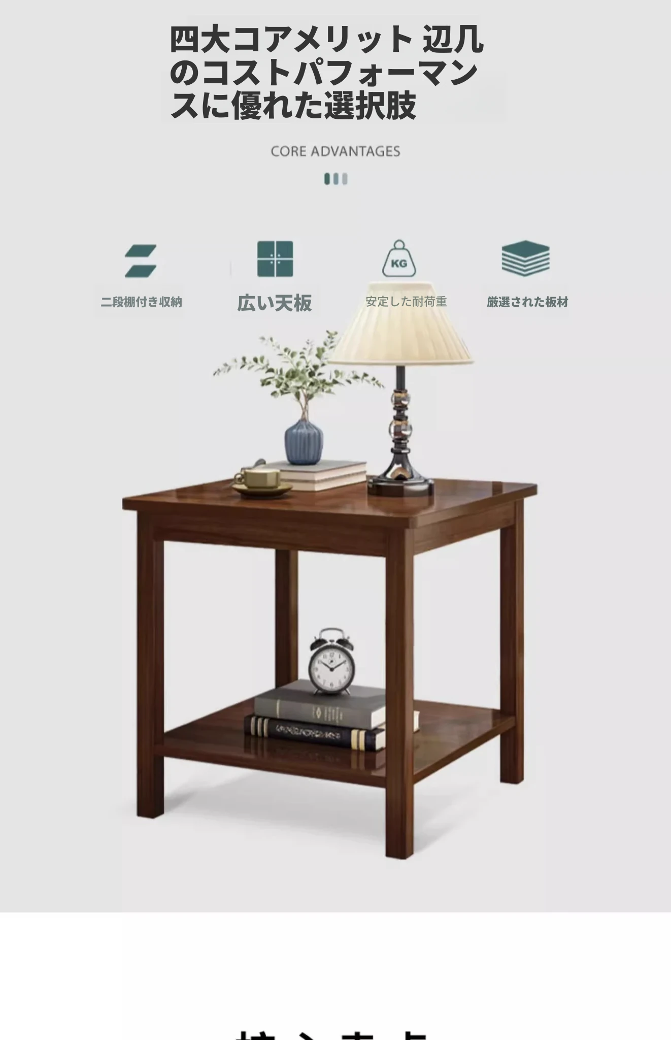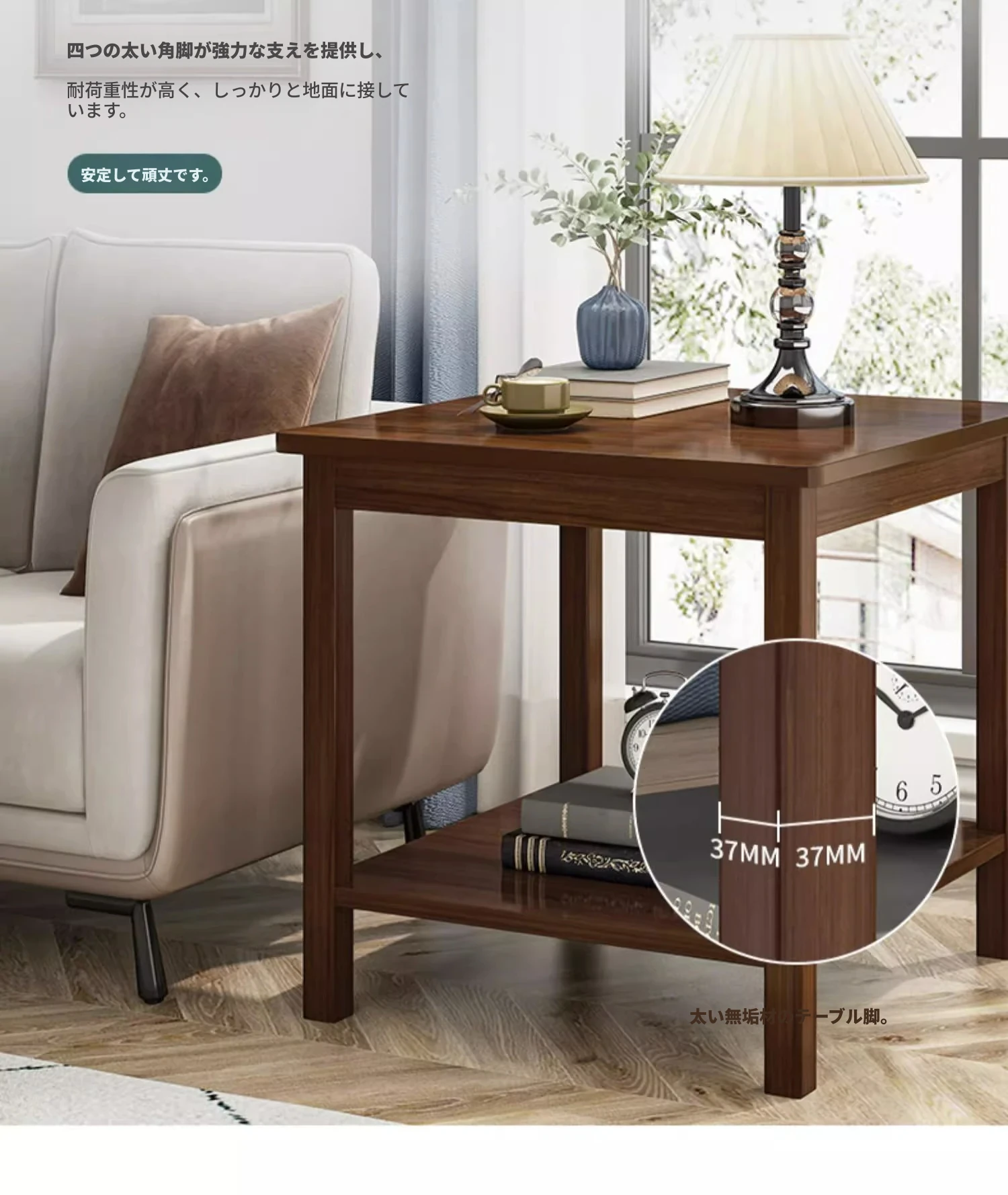 【無垢材四本脚】二層原木色60*60CM