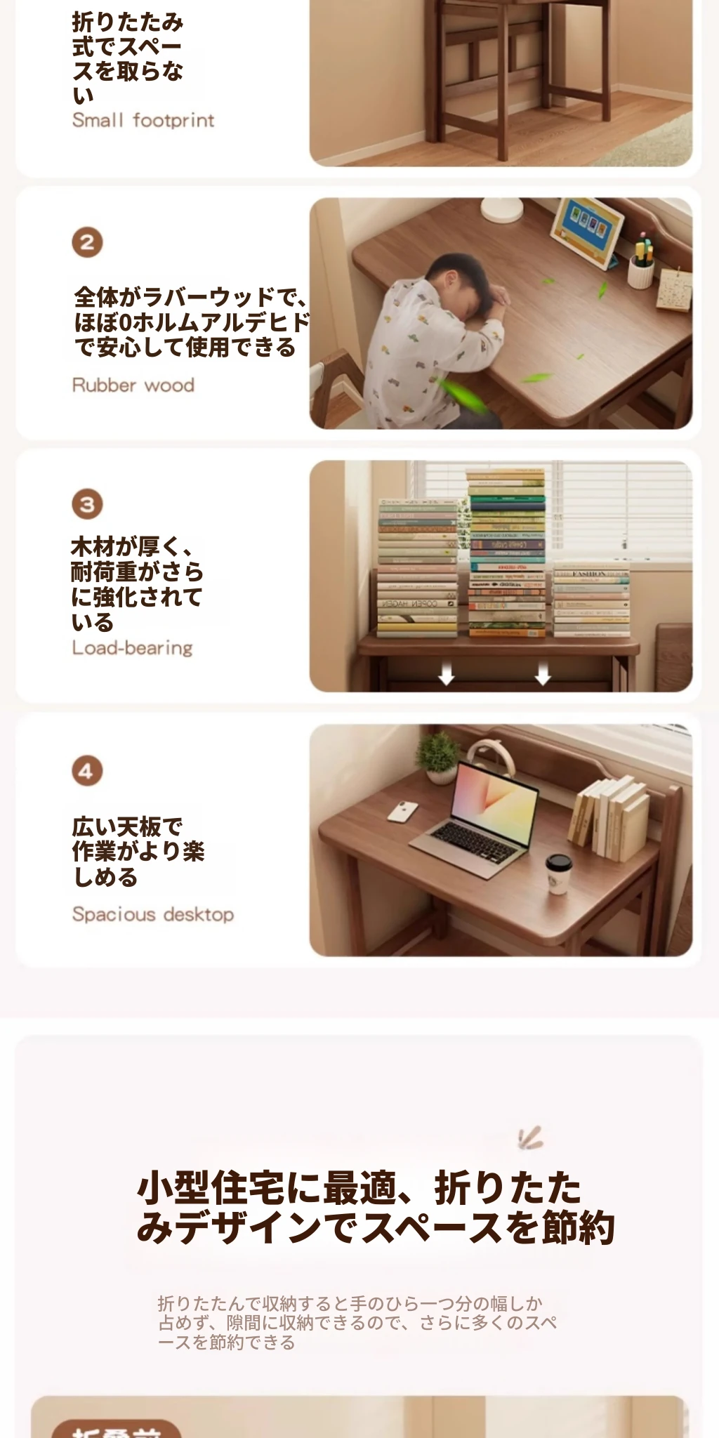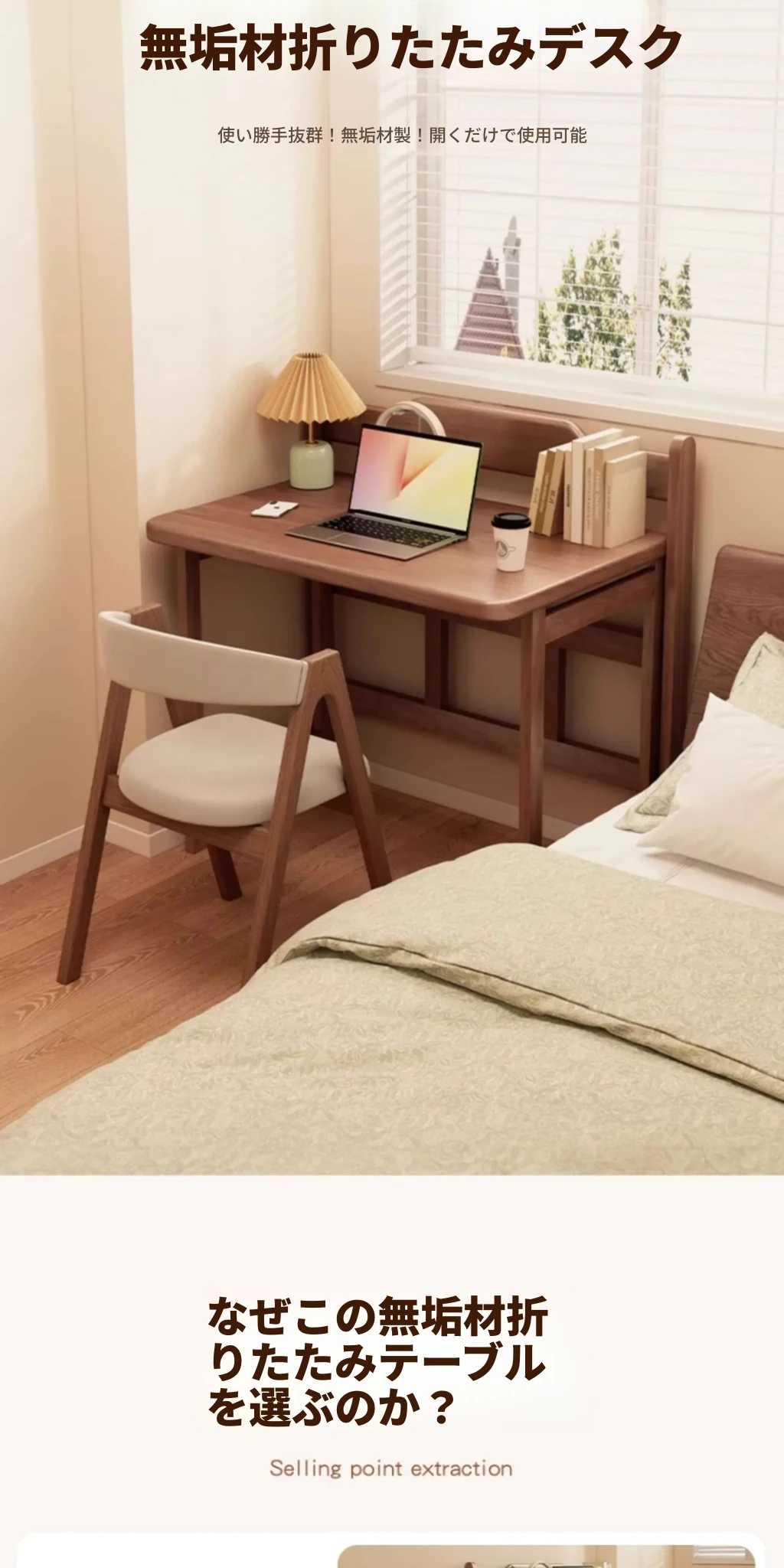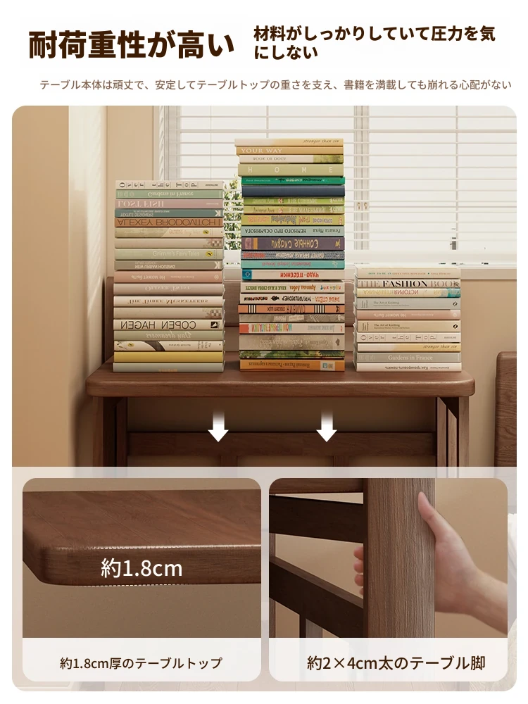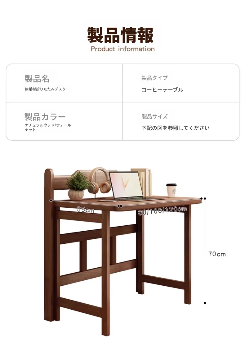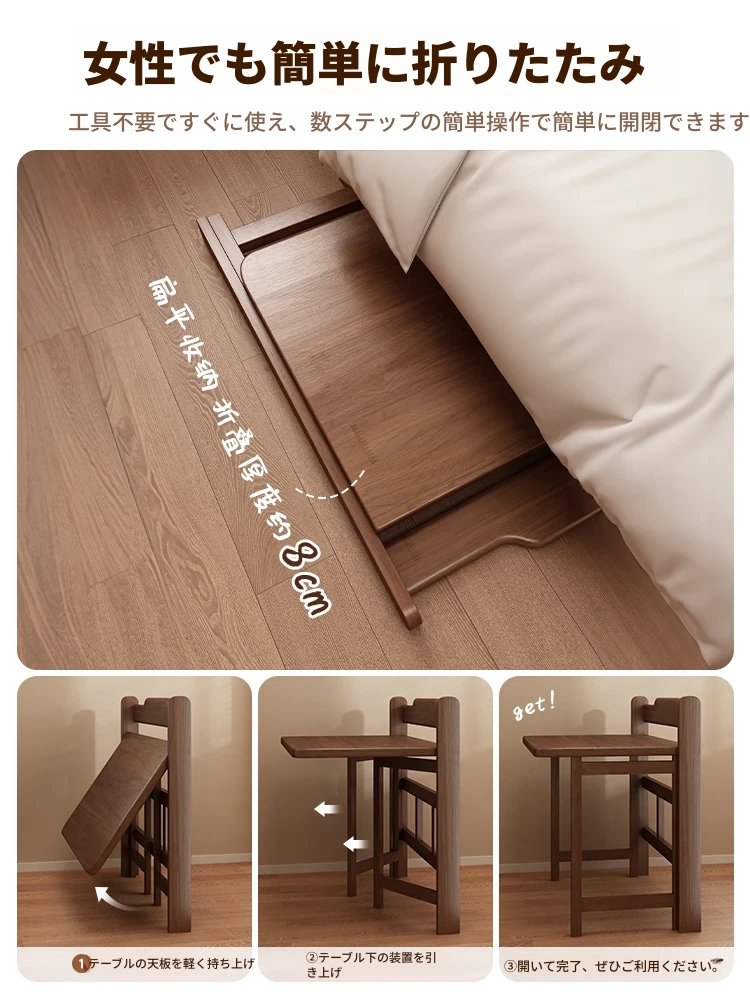 無垢材折りたたみデスク|学生・家庭用に最適なノートパソコンデスク|省スペース設計で寝室や小さな部屋にピッタリ!シンプルでスタイリッシュな学習机、ベッドサイドテーブルにも最適です。