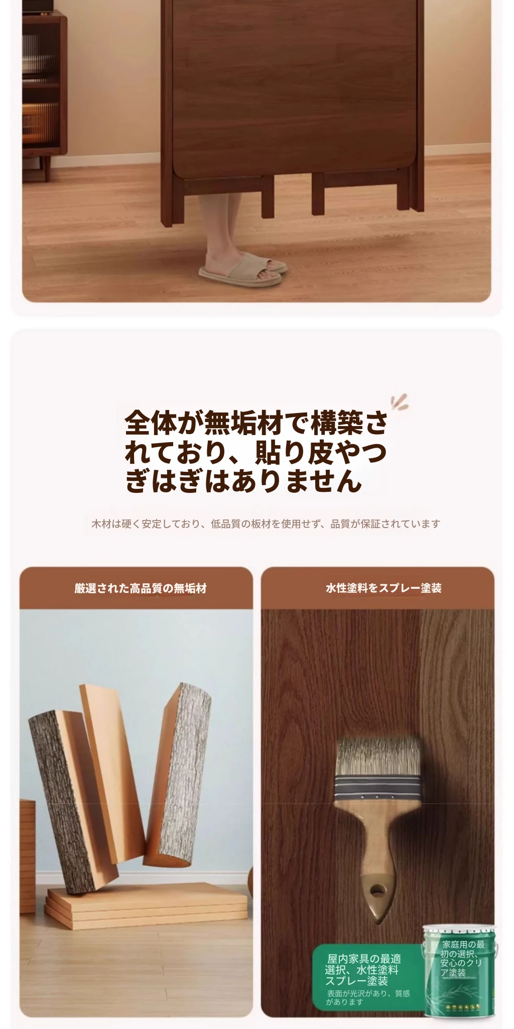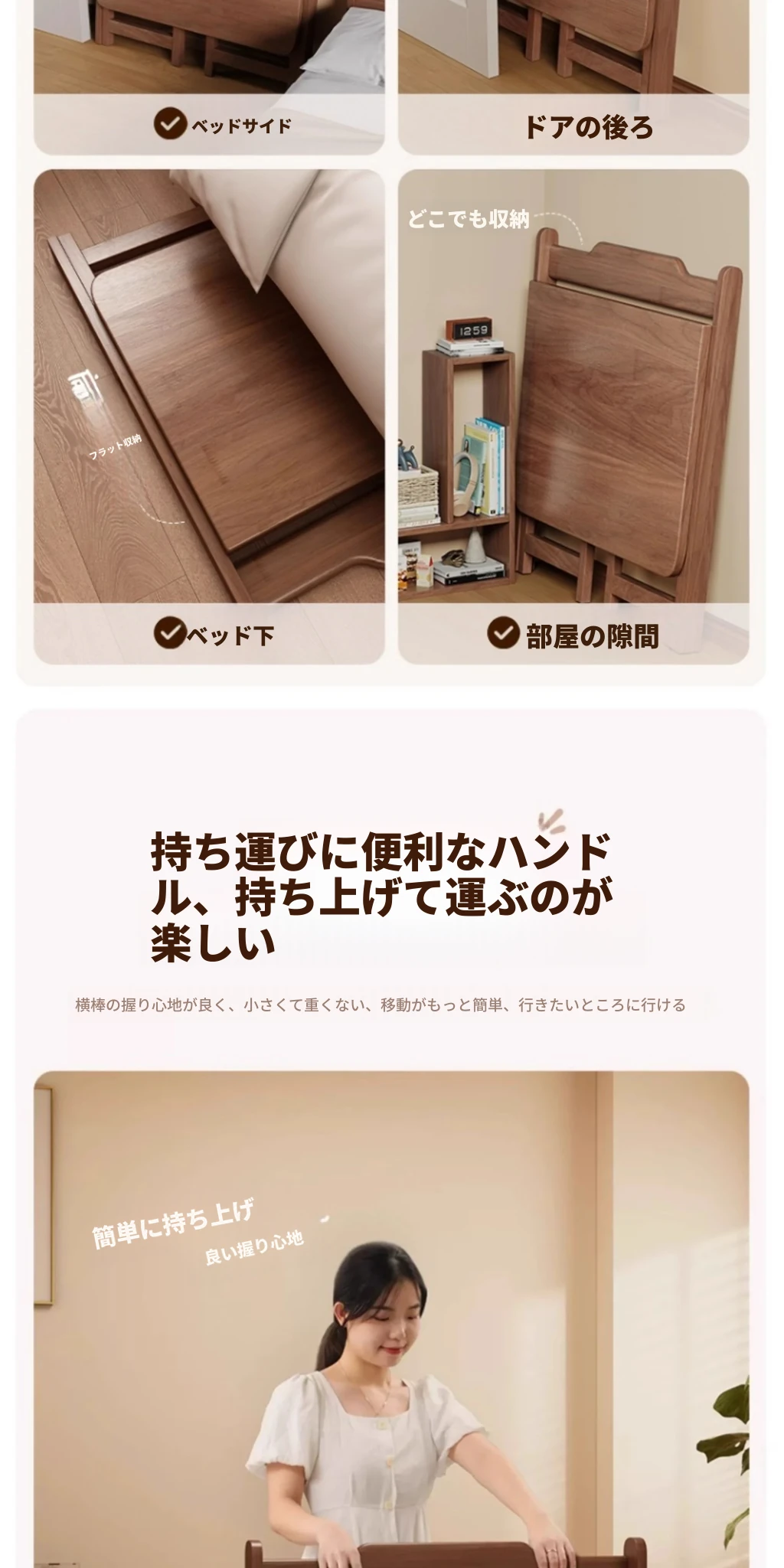 福利款⭐【全実木】折りたたみ可能で収納しやすい-ウォールナット色80cm⭐玄関先配送
