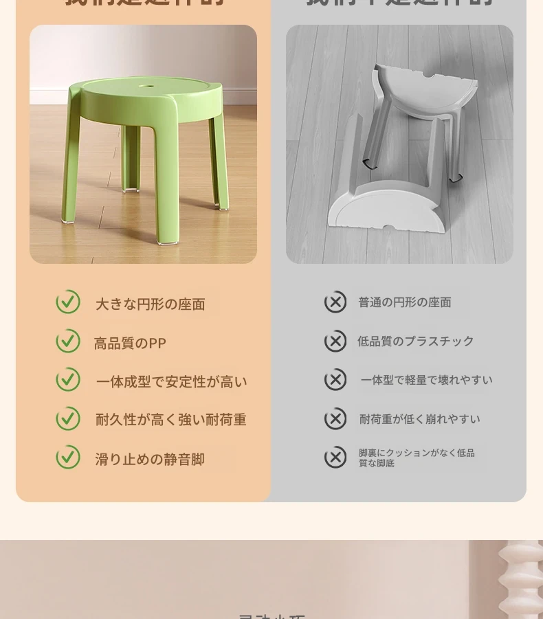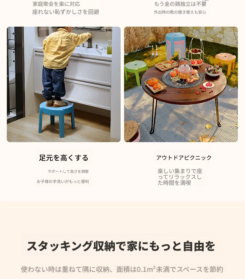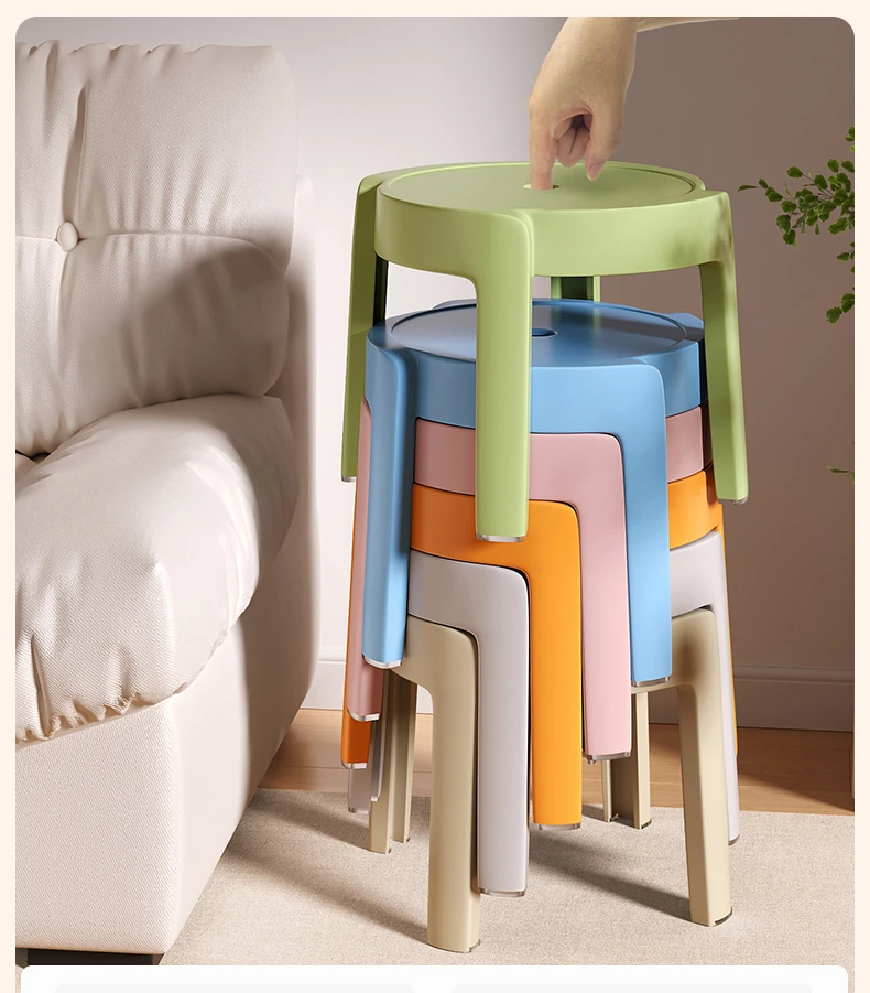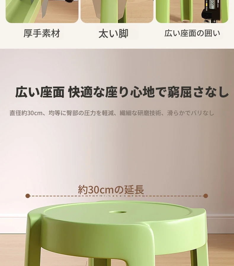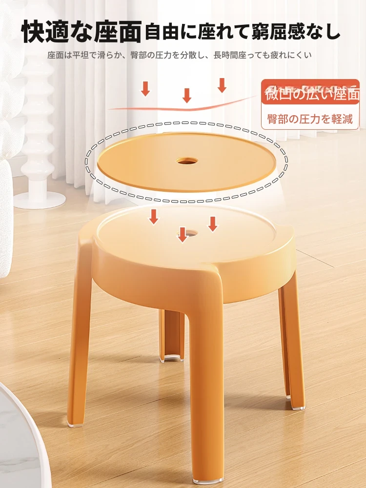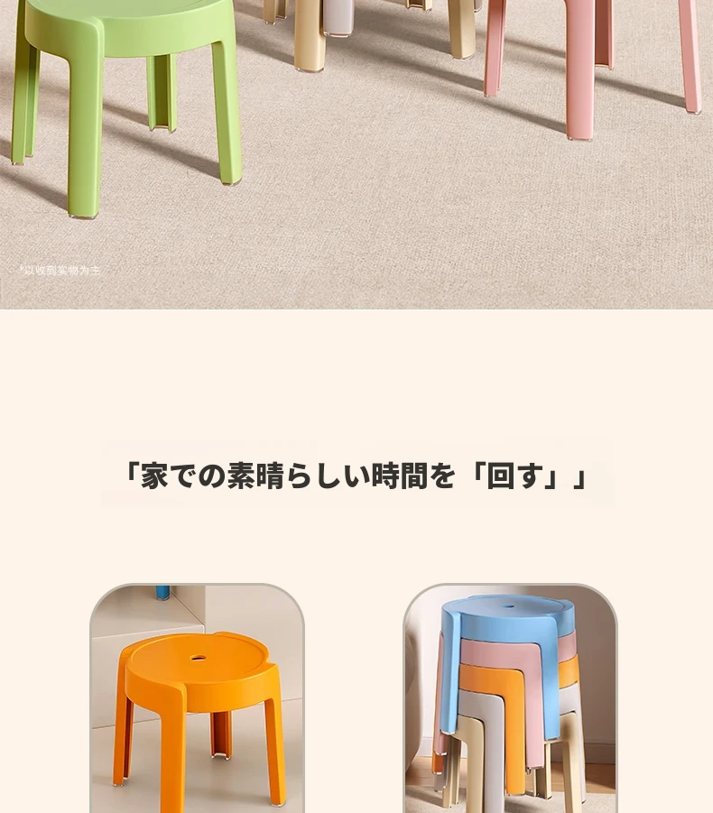 重ねられるプラスチック製スツール|家庭用・厚手・滑り止め付き|風車デザインでおしゃれなリビングやテーブルに最適|バスルームや円形スツールとしても使える便利なアイテム!