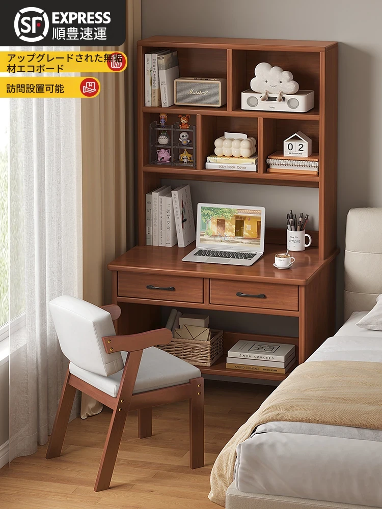 天然木材使用の書斎デスク&本棚一体型!大人も学生も使える、コンパクトなデザインで寝室や小さな部屋にもぴったり。快適な学習環境を提供する、スタイリッシュな書き物台!
