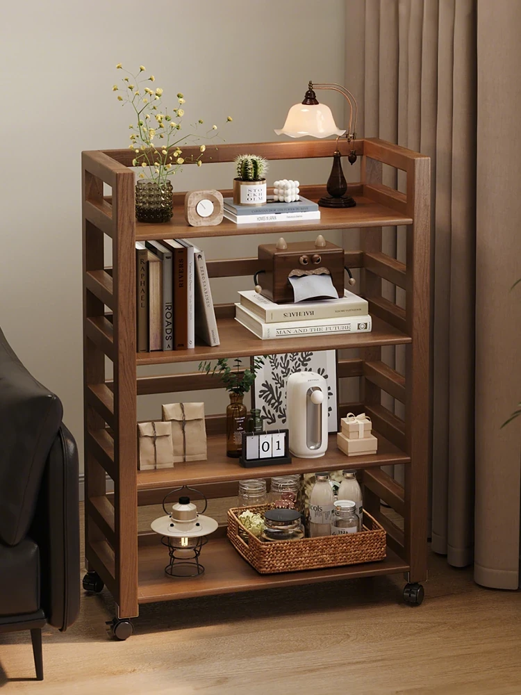 ウォールナットカラーの無垢材収納シェルフ - ヴィンテージ風の移動ソファサイドキャビネット、小型本棚、段階式フロア収納に最適な小型ワゴン!おしゃれで機能的な収納を手に入れましょう。