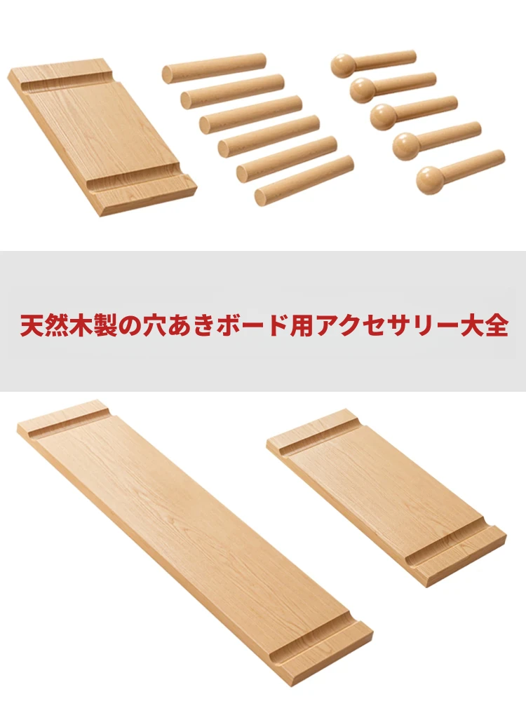 高品質な無垢材の穴あきボード用アクセサリー!ユニバーサルな壁掛け丸穴フック、木製の小中層板、マッチ棒や小さな木棒のための便利な棚。お部屋をスタイリッシュに整理整頓しましょう!