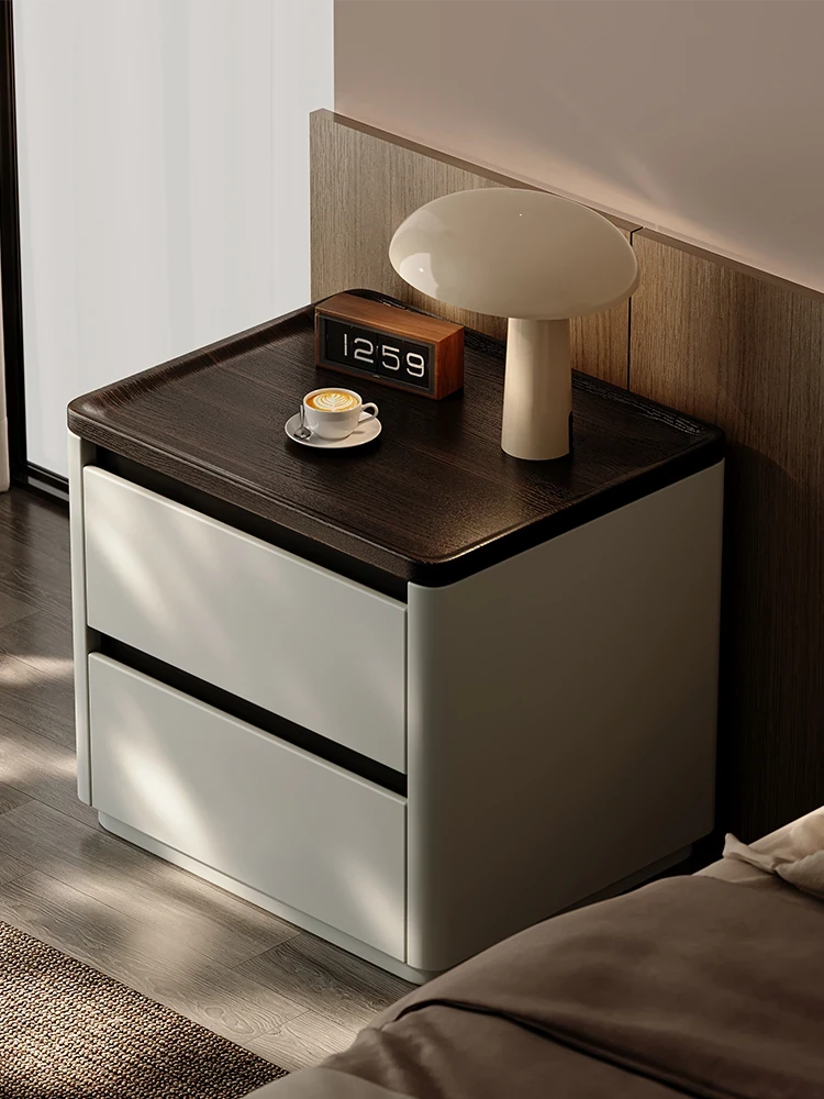 イタリアンスタイルの高級感あふれる無垢材ナイトテーブル2025年新作!シンプルでモダンなデザインが魅力のベッドサイドキャビネット。おしゃれな寝室を演出する必見アイテム!
