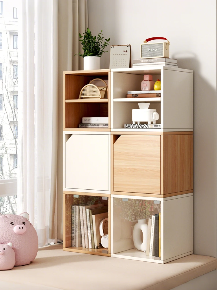 多機能!窓辺にぴったりの収納ボックス - 自由に組み合わせ可能な多層グリッドキャビネット、書棚、ホコリから守る扉付き収納キャビネット!あなたのスペースを美しく整理整頓!