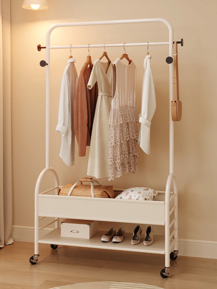 寝室にぴったりの移動式ハンガーラック!ベッドサイドに置ける便利な衣類収納アイテム。夜のお洋服もすっきり整理できる、スタイリッシュなコートラック!あなたの生活をもっと快適に!