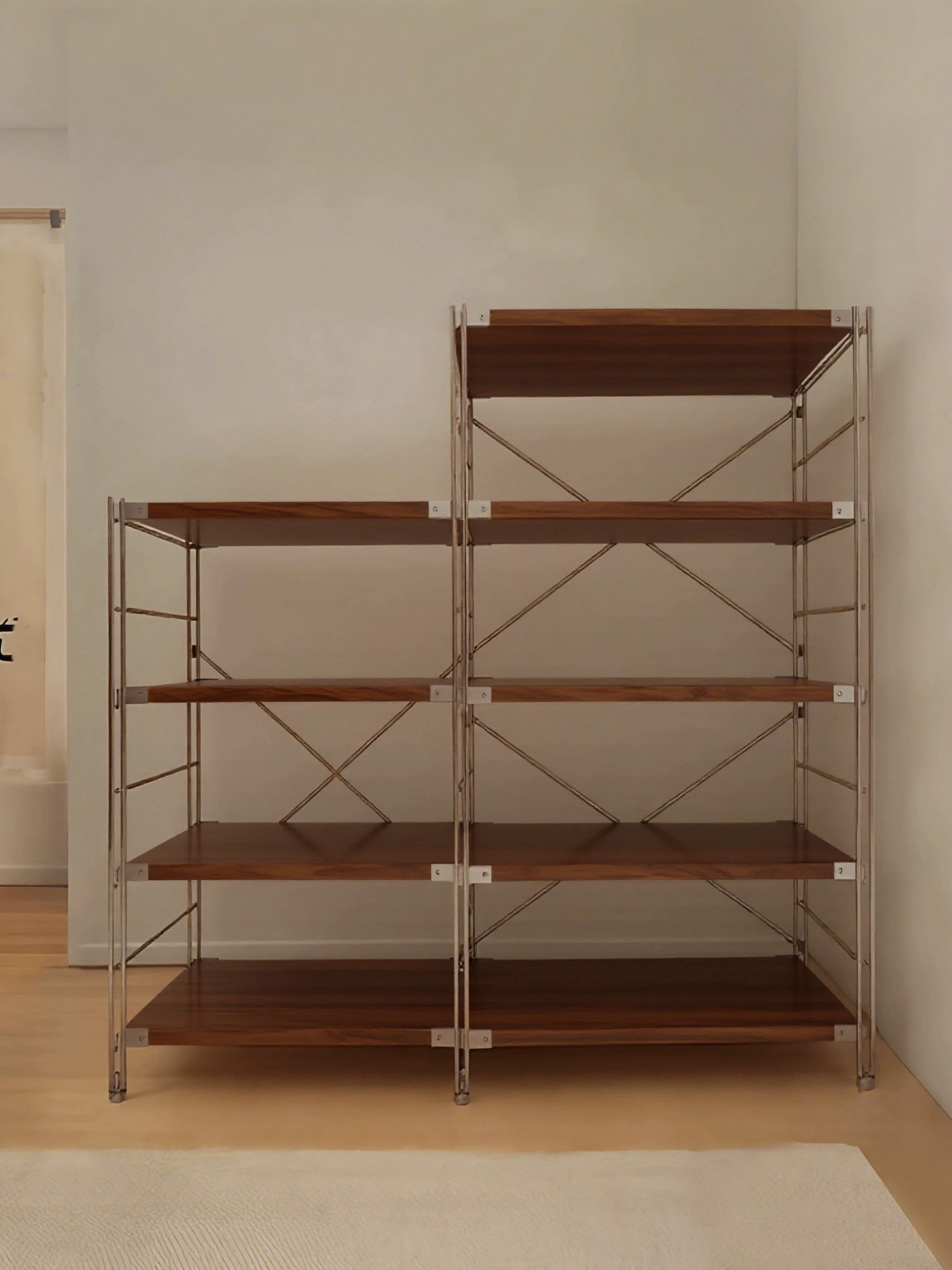 中古のフロアシェルフ 八百庫 多段収納ラック バルコニー用 和風ライトボックス ストレージキャビネット ウォールナットカラー サブラックで整理整頓!おしゃれな収納でスペースを有効活用!