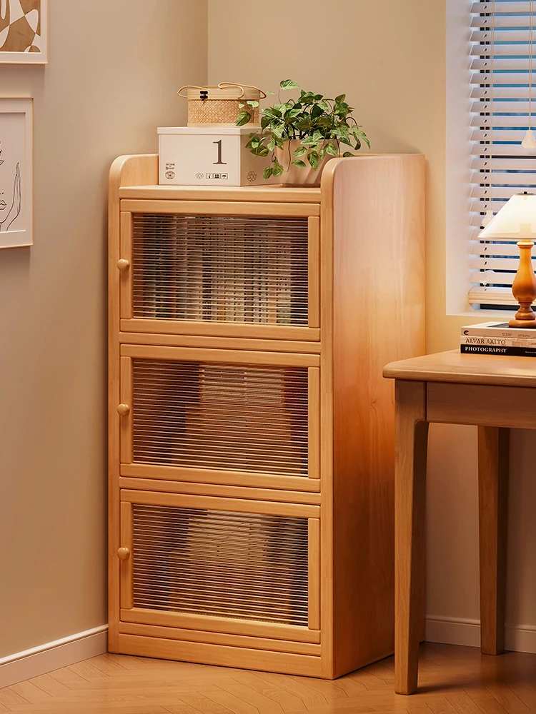 実木製スリム収納キャビネット|壁面にぴったり収まる角型デザイン|小型木製キャビネット|子供向け防塵ブックシェルフ|おしゃれで機能的な収納ソリューション!
