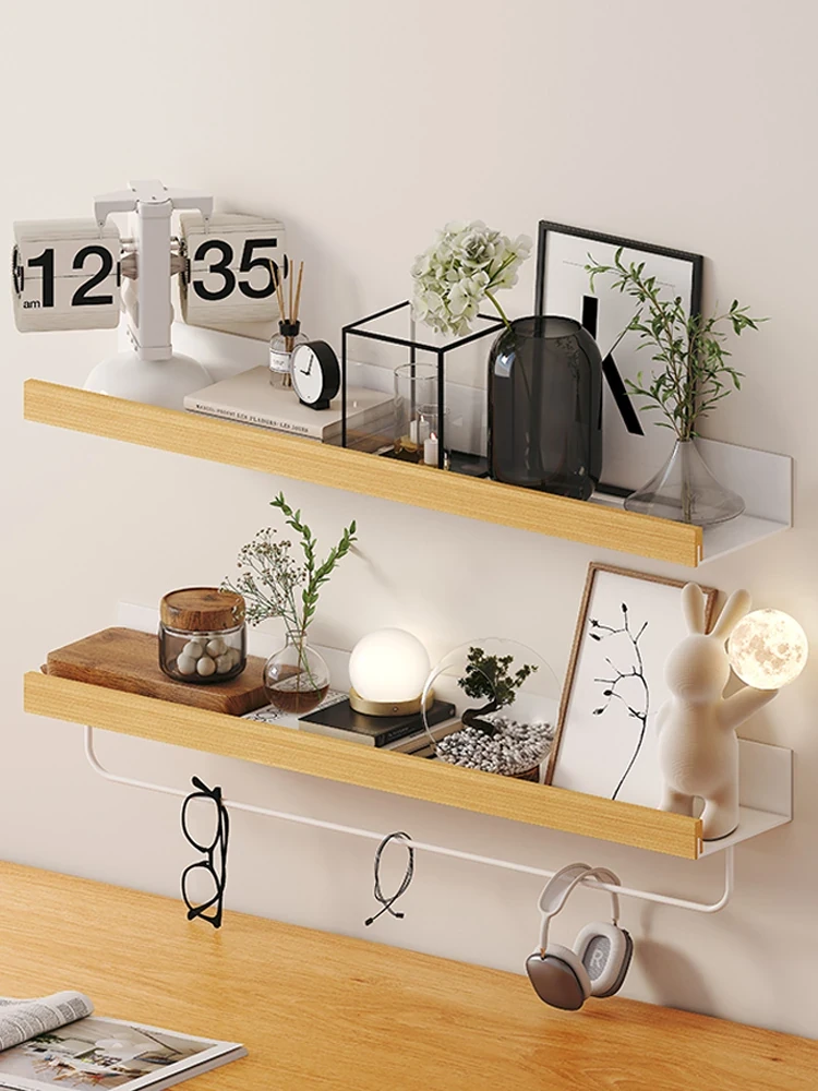 壁掛け収納ラック 壁面装飾シェルフ 取り付け不要で簡単設置!リビングにぴったりなスタイリッシュなデザインの一字型仕切り棚。お部屋をおしゃれに演出し、スッキリ片付けるのに最適です!