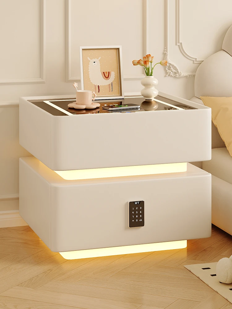 2025年新款!実用的な無線充電機能付き、スマート多機能ベッドサイドテーブル。おしゃれな浮遊灯と安全な暗証番号ロックで、あなたの寝室を一層魅力的に演出します!