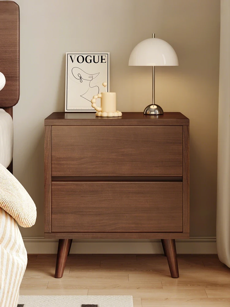 ヴィンテージ風の無垢材ベッドサイドキャビネット - 高級感溢れるコンパクト収納、スリムデザインで狭いスペースにもぴったり!おしゃれで機能的な収納ソリューション。