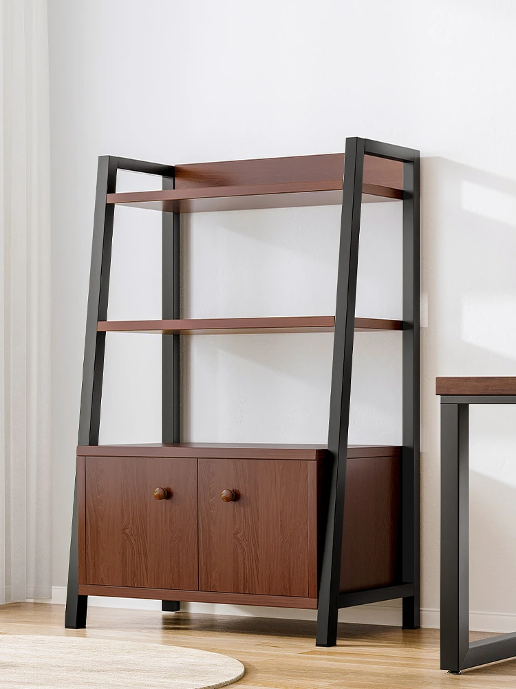 トラペゾイド型収納ラック - 家庭用多段式収納シェルフ、扉付きでリビングやオフィス、寝室に最適な本棚!整頓された空間を実現し、インテリアにもマッチ!