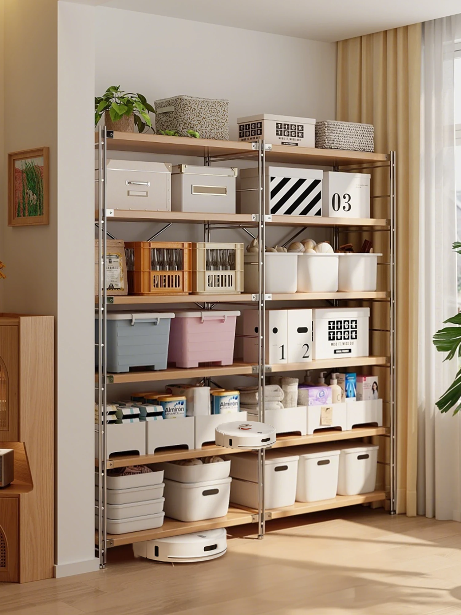 家庭用多層ラック - リビングルームに最適な収納棚!整理整頓を簡単にし、書籍や小物を美しくディスプレイ。バルコニーでも活躍する、スタイリッシュで便利な収納ソリューション!