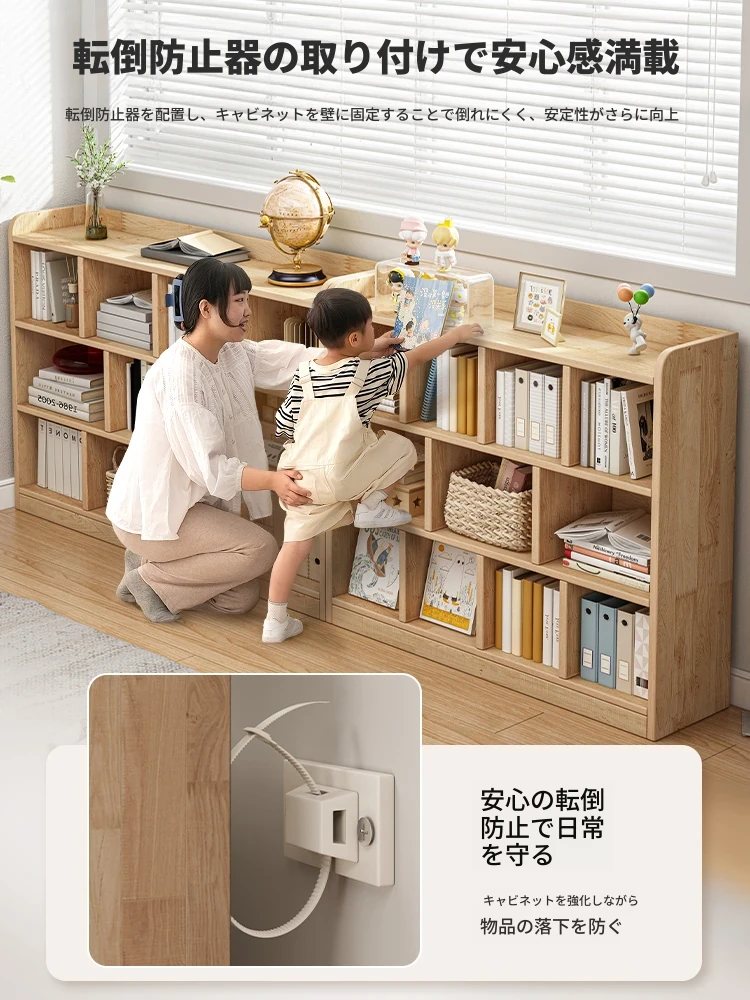 天然木製のフロア書棚 - シンプルでかわいい子供用収納キャビネット、幼稚園のバッグ収納にも最適!お部屋をスッキリ整理整頓できる、実用的でスタイリッシュなアイテムです。