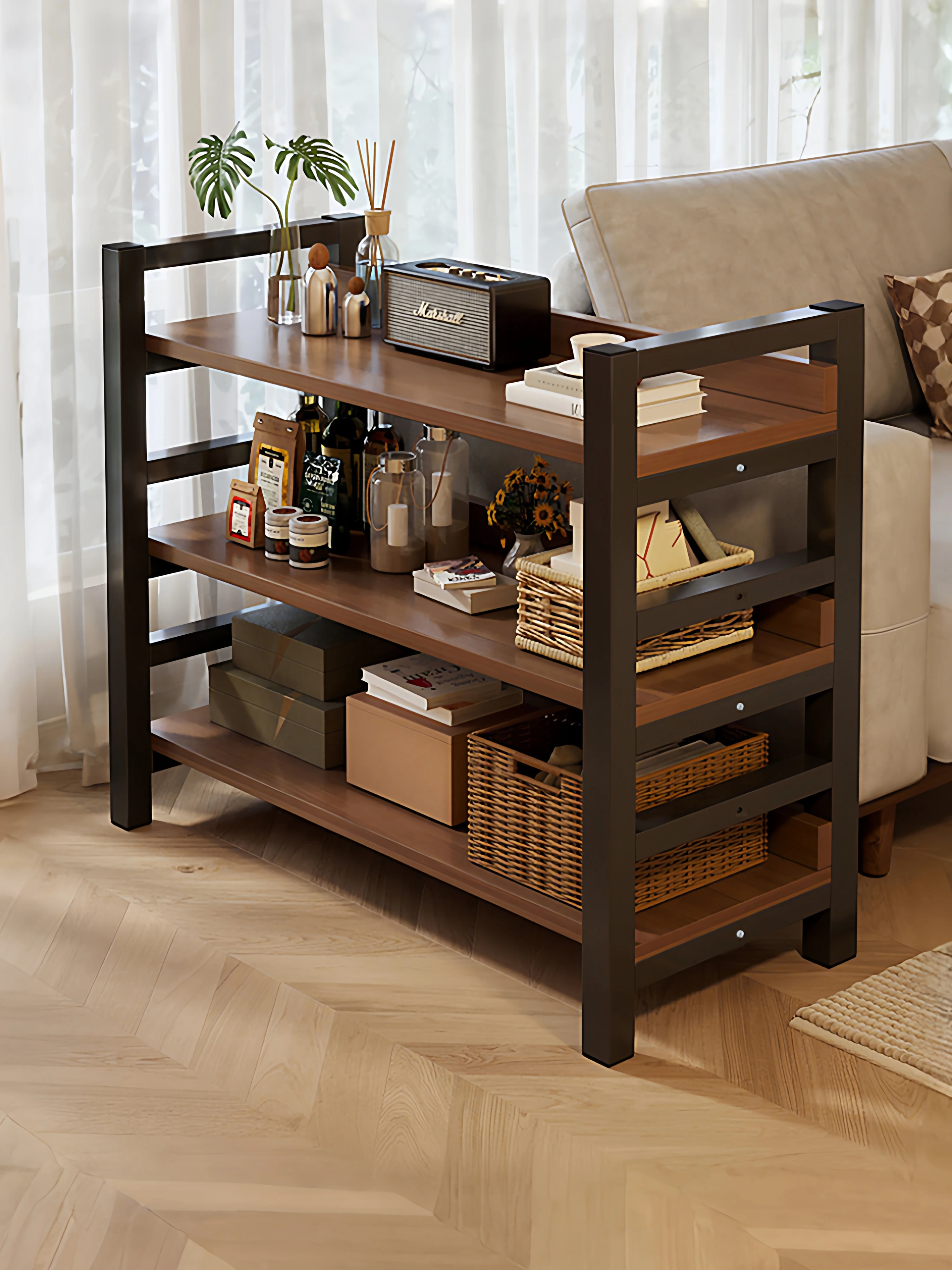 おしゃれな多層収納ラック!家庭用バルコニーに最適な低い金属製キャビネット。省スペース設計で、あなたの生活空間をスッキリ整理整頓。展示にも最適なアイテムです!