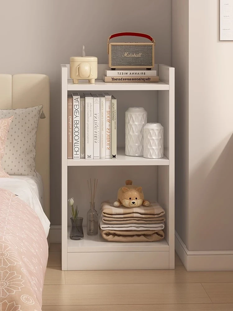 ベッドサイド収納棚一体型フロア書棚 – おしゃれで機能的なベッドルーム用収納キャビネット。限られたスペースを有効活用し、書籍や小物をスマートに整理整頓!あなたの寝室をスタイリッシュに演出します。