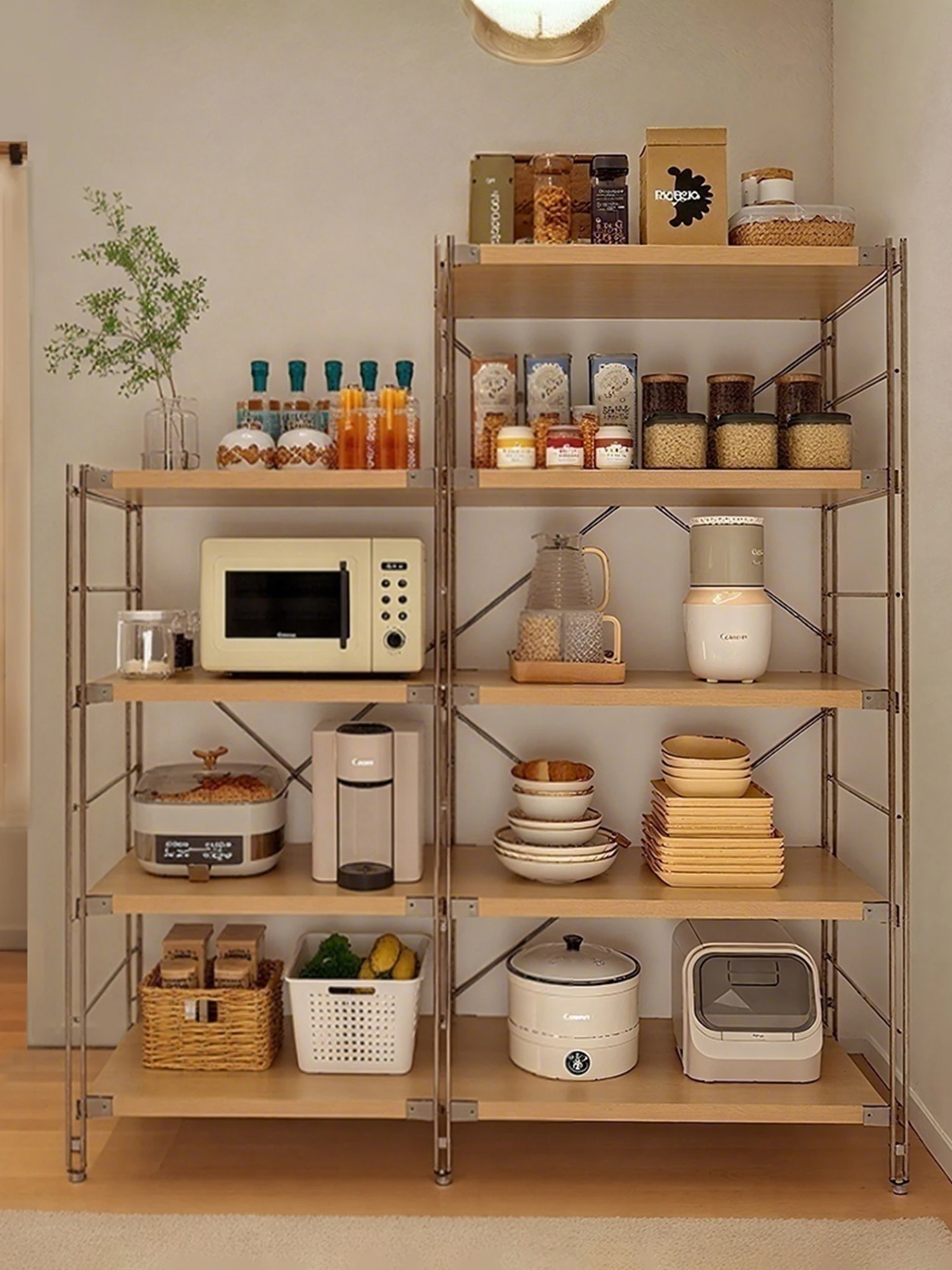 和風光軸収納ラック - キッチンやバルコニーにぴったり!多層デザインで家の収納力をアップ!展示もできるおしゃれな副架。あなたの生活空間を美しく整理整頓しましょう!
