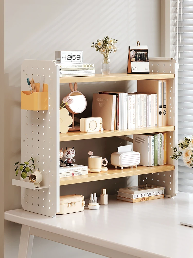 デスク用穴あきボード収納ラック ゲーミングルームや書斎に最適!デスク上のアクセサリーをすっきり整理できるフック付きブックシェルフ。コンパクトでスタイリッシュなパソコン用縦型オーガナイザー!