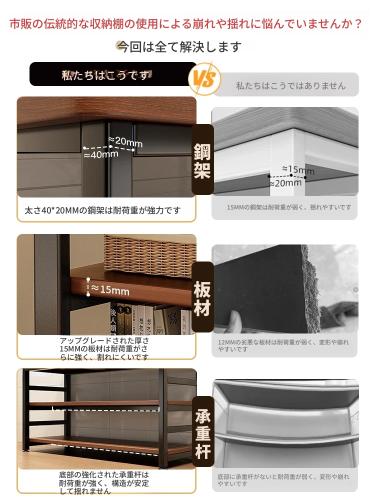 家庭用マルチ機能収納ラック|多層タイプの大型スナック収納棚|アイアン製の書棚|整理整頓を簡単に!大容量で使いやすい収納スペースを実現!