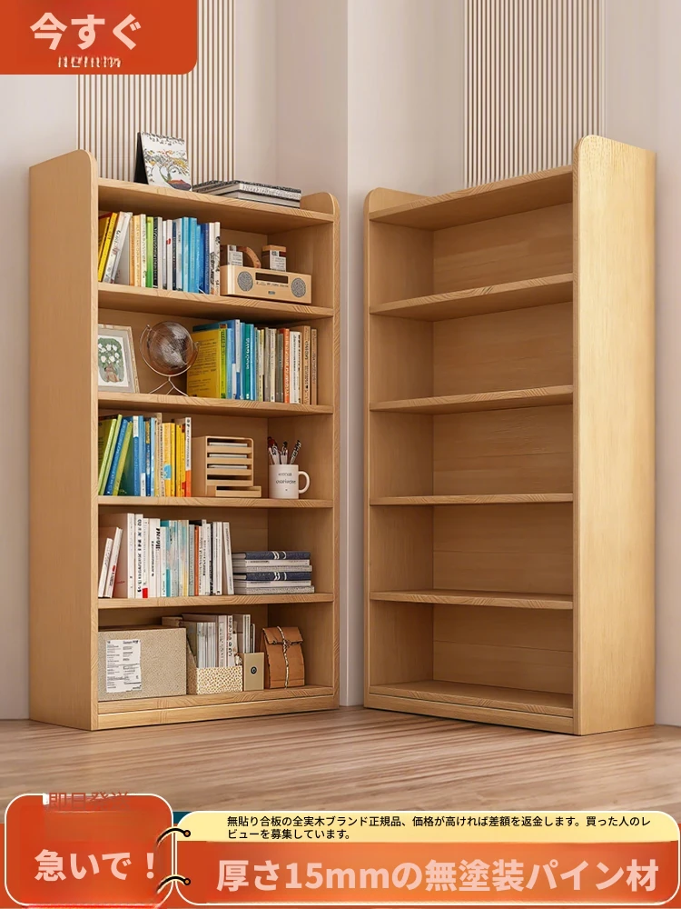 全実木製のスタンディング書棚 - 壁にぴったりフィットする収納力抜群のキッズ&学生用本棚!家庭での収納に最適、あなたの空間を美しく整理整頓します。